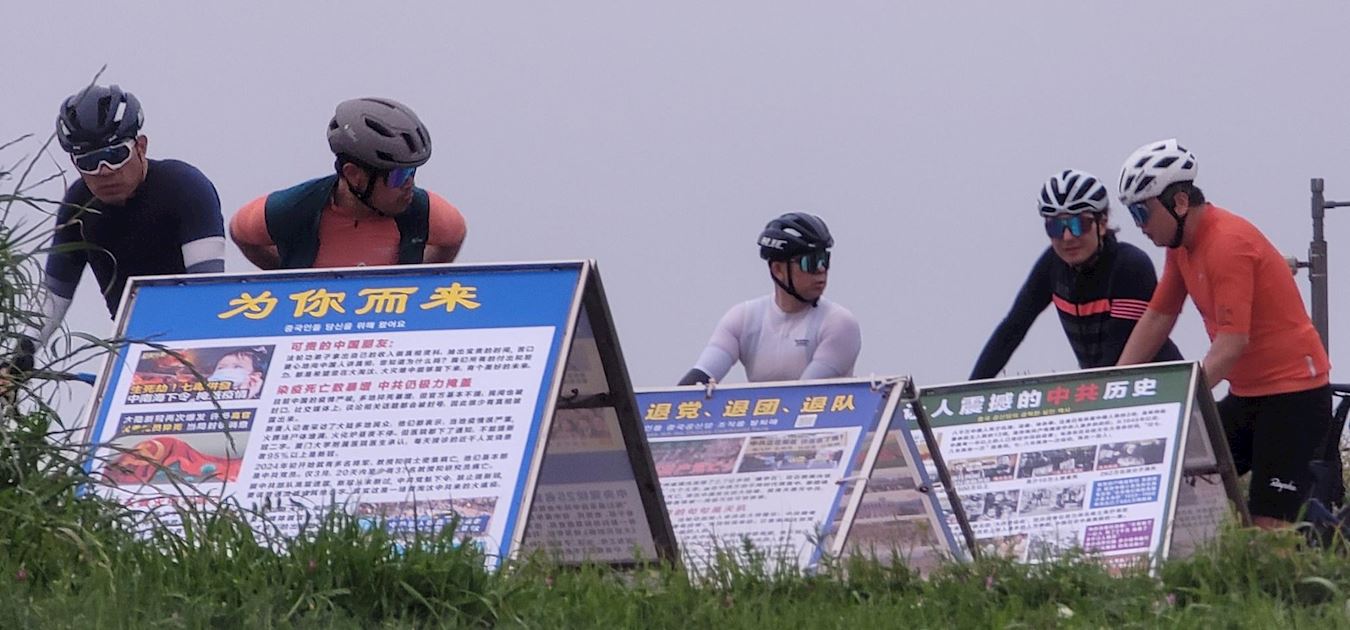 '图6~7:是邮轮码头,中国大陆游客下船的必经之地,去打横幅的同修平时2人,最多时3人。'