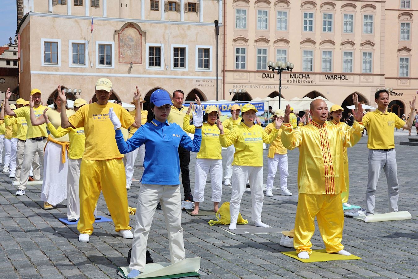 由欧洲法轮功学员发起的集会游行活动前,学员们在演讲中希望让更多人了解法轮大法的美好,以及正在中国发生的对法轮功学员的血腥迫害。游行从城堡广场(Hradcany Square)出发,行经查理大桥(Charles Bridge),而后绕行城市大街小巷。