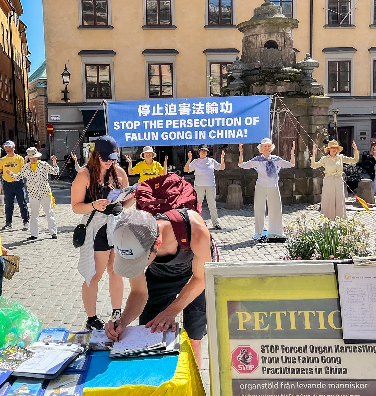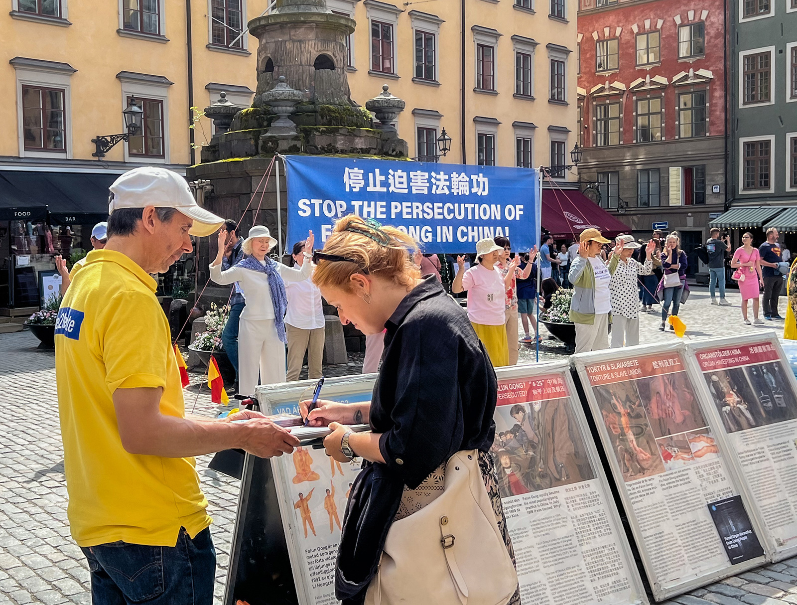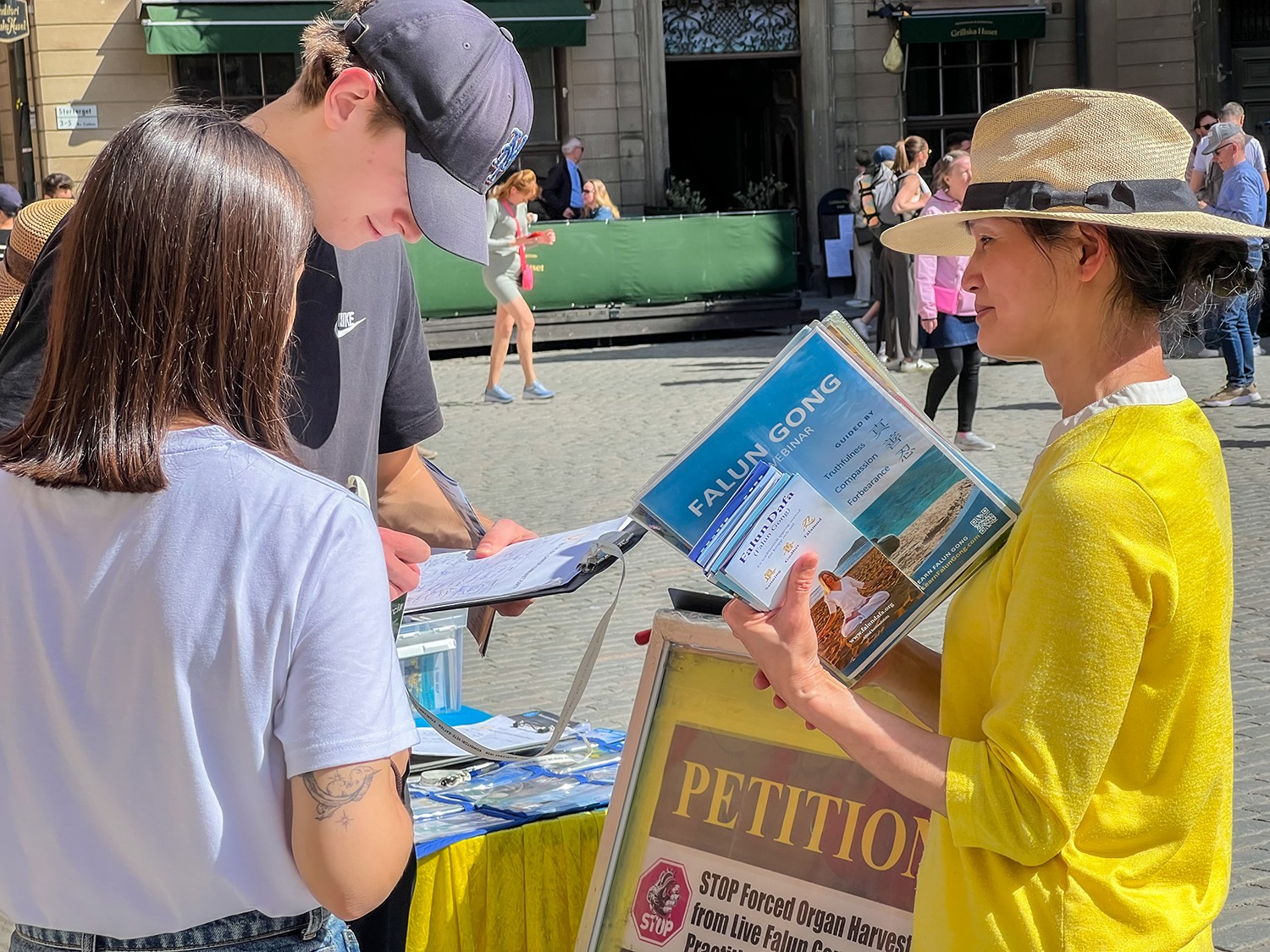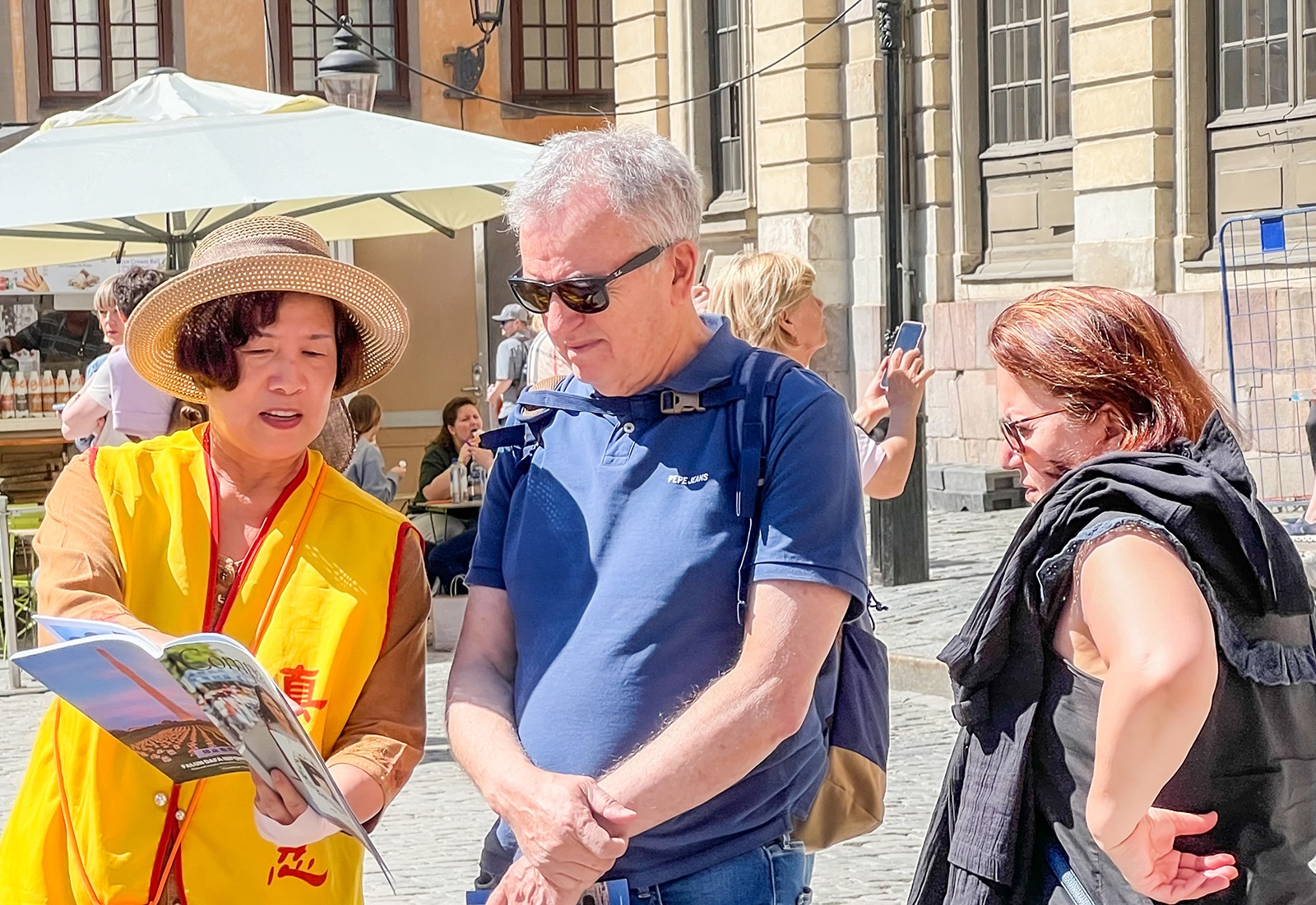还有一对大陆来瑞典工作的小夫妻也来听学员讲真相,那位女士说:“过去我对法轮功的了解都是中共媒体宣传的。来到海外后,多次遇到过法轮功象你们这样公开讲真相的活动,震撼人心。而且看到还有很多外国人都在炼法轮功,这和中共宣传的完全不符啊!”