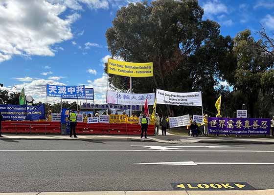 - 中共总理访澳 法轮功呼吁停止迫害- 六月十五日至十八日,中共总理李强访问澳洲,行程包括阿德莱德、首都堪培拉和珀斯,访问团所到之处,都可以看到法轮功学员的和平抗议队伍,沿途可见醒目的真相横幅。