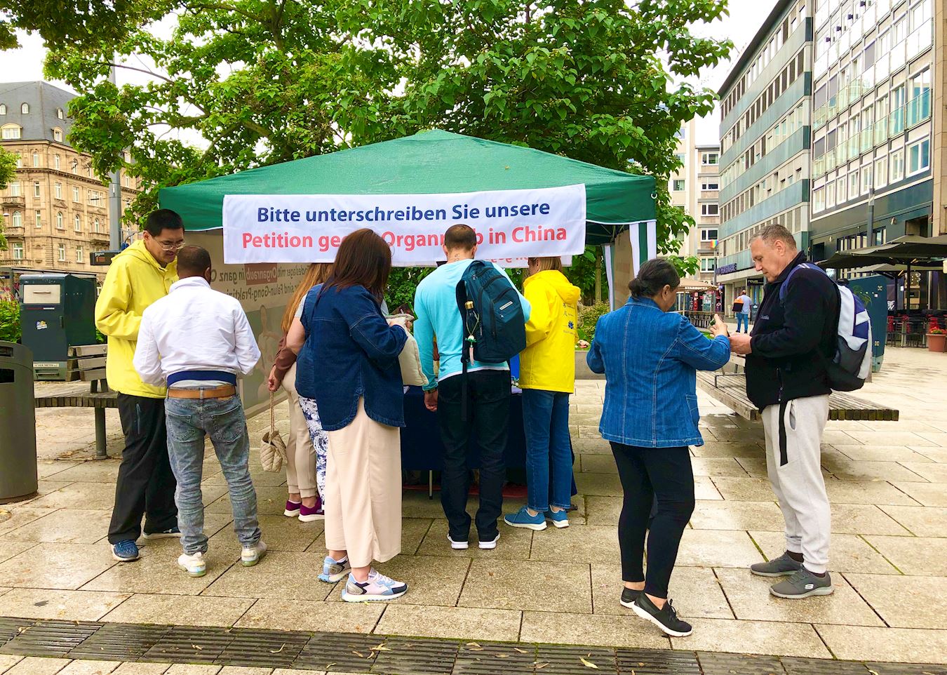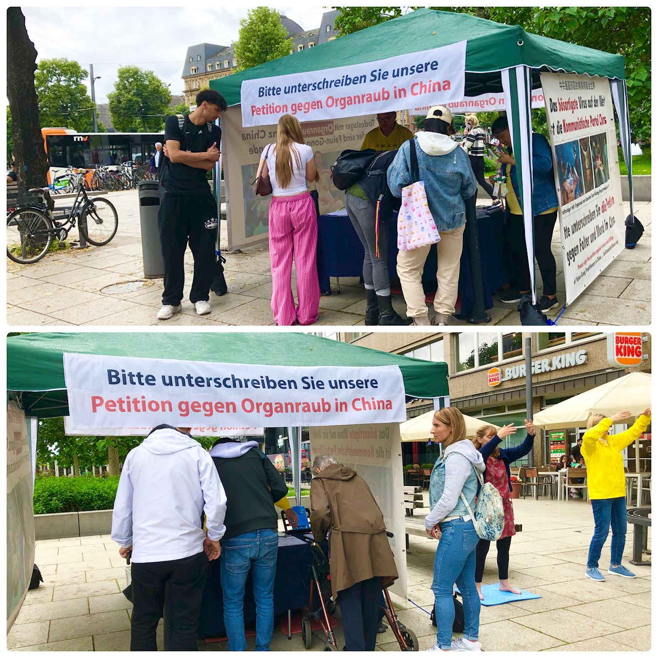 【明慧网二零二四年六月二十四日】二零二四年六月二十二日,德国莱茵-内卡地区(Rhine-Neckar)法轮功学员在大学城曼海姆(Mannheim)购物主街举办活动,弘扬法轮功真、善、忍精神,揭露中共长期迫害法轮功以及活摘法轮功学员器官的罪行,并向路人征签反迫害。