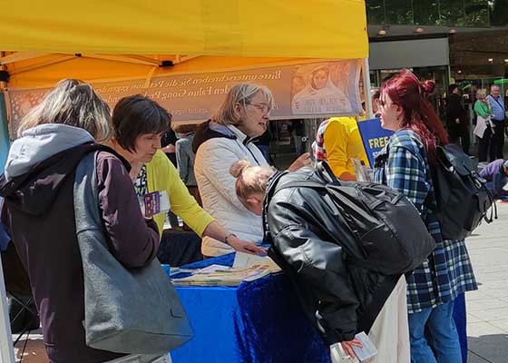 六月十五日,德国法轮功学员聚集在汉诺威市中心,举办信息日活动。学员们向民众讲述了法轮大法的美好和中共迫害法轮功的邪恶行径。