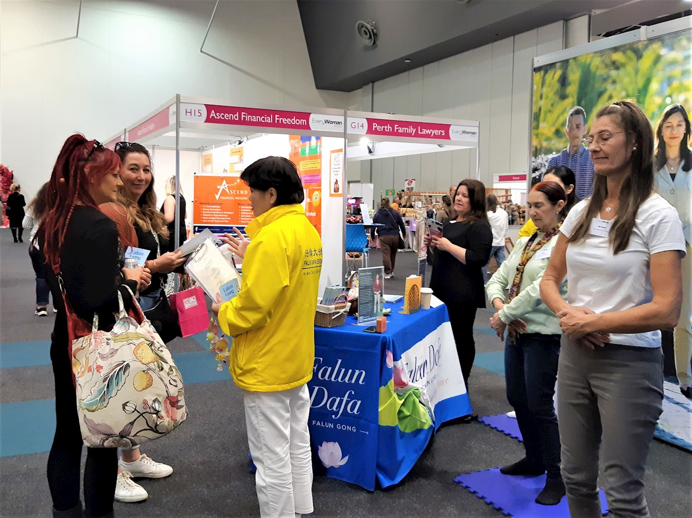 这是发生在澳洲珀斯会展中心(Perth Convention and Exhibition Centre)于二零二四年六月二十一日至二十三日举办的“每位女人”(Every Woman Expo)博览会上,西澳法轮功学员参加了为期三天的该年度盛会。