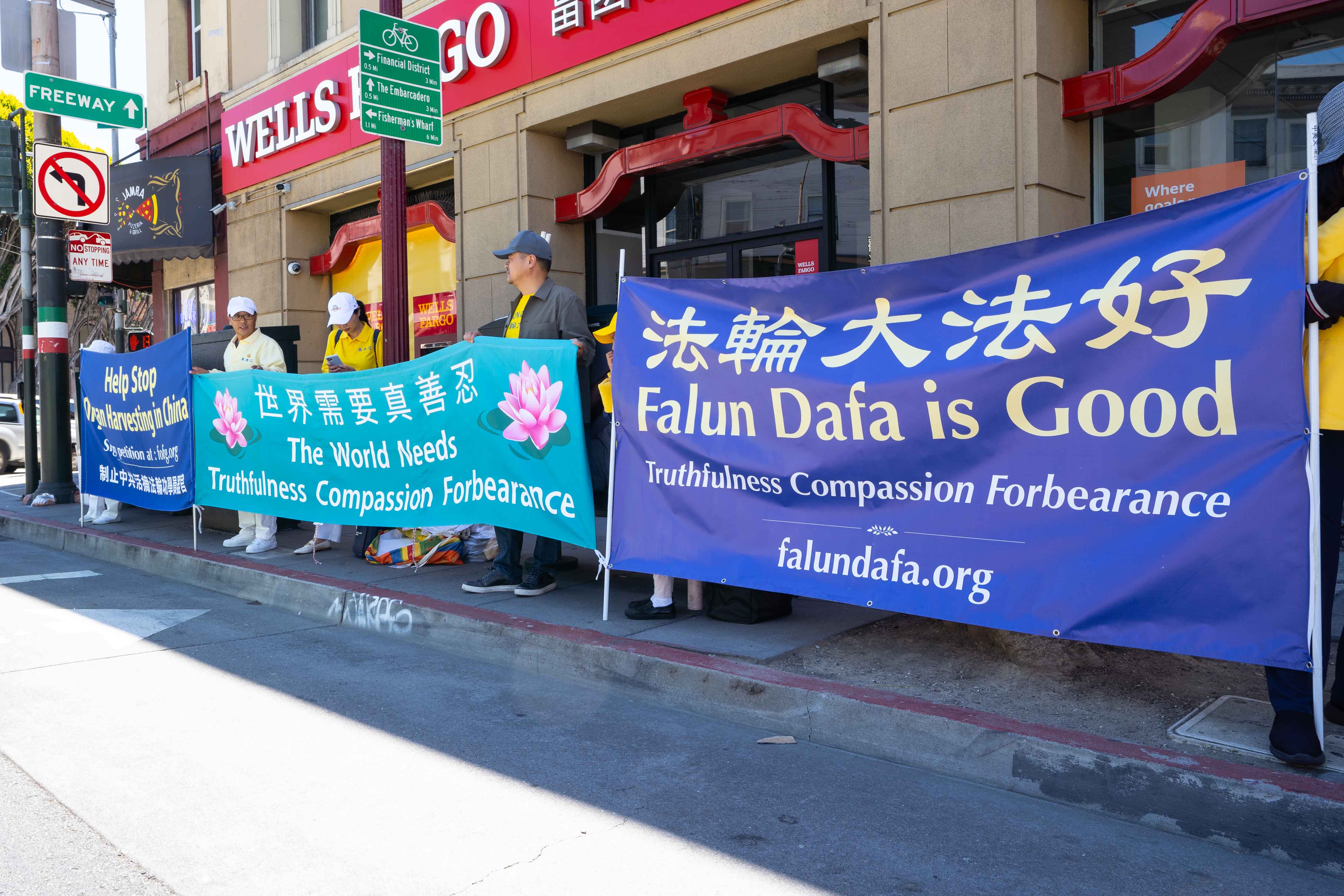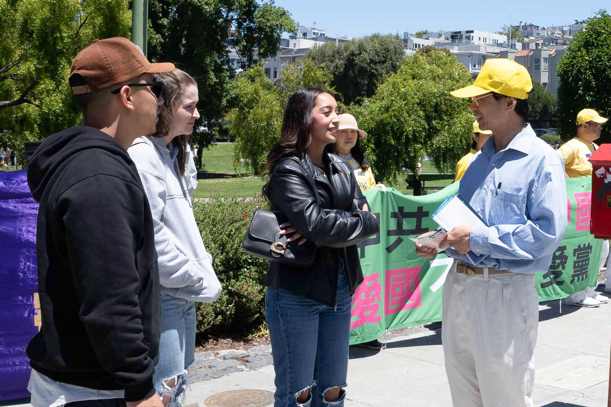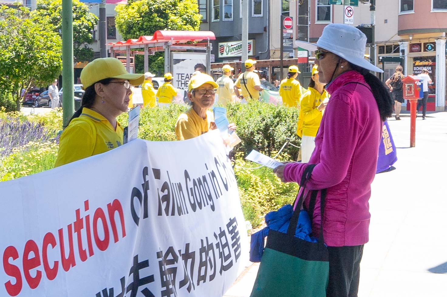 另一位旧金山居民凯利(Kelly)看到法轮功学员,很高兴,她说,“你们来这里讲真相,非常勇敢。每个人都应该了解发生在中国的迫害,你们一直都在坚持讲真相,谢谢你们。”