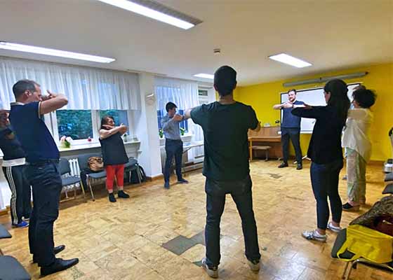 - 德国多座城市举办九天班 新学员受益非凡- 五月十三日至五月底,德国法轮功学员相继在法兰克福、柏林、慕尼黑、曼海姆和不来梅举办了为期九天的学习班(简称九天班),免费教人们学炼法轮功。