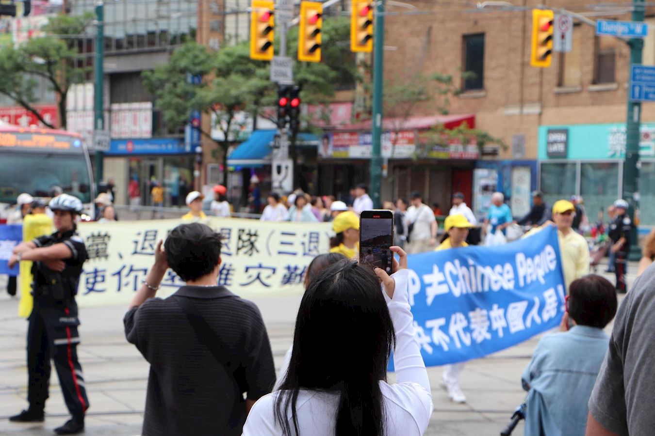 【明慧网二零二四年七月一日】(明慧加拿大多伦多记者站报道)二零二四年六月二十九日,加拿大多伦多法轮功学员在多伦多市中心的唐人街举办游行活动,庆祝四亿三千万中国人退出中共党、团、队组织,同时呼吁制止中共长达二十五年对法轮功学员的残酷迫害