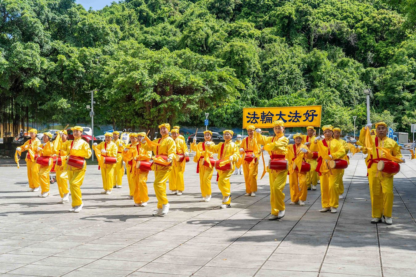【明慧网二零二四年七月十日】(明慧记者孙柏、李勤台湾高雄采访报道)二零二四年七月七日下午,高雄部分法轮功学员来到莲池潭景点炼功弘法,向市民传递法轮大法的美好,其中包括腰鼓队表演,以及法轮功五套功法演示。法轮功学员祥和的炼功场面,吸引路过的民众驻足观看;有缘人纷纷接过传单,聆听真相,并拍照留念。