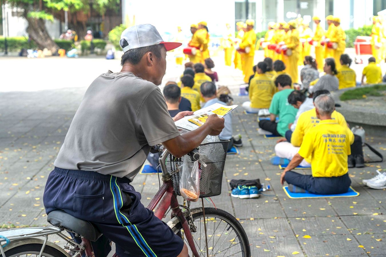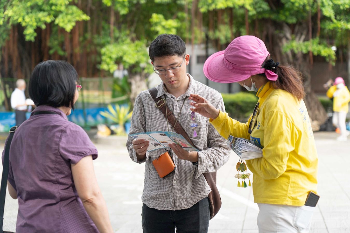 原自营餐饮事业的林先生,当天与妻骑车经过莲池潭,也被法轮功弘法活动吸引。接下真相传单后,他郑重表示,“当年‘六四’事件,真是太残忍了!这件事,早已证明中共就是极权独裁国家。”
