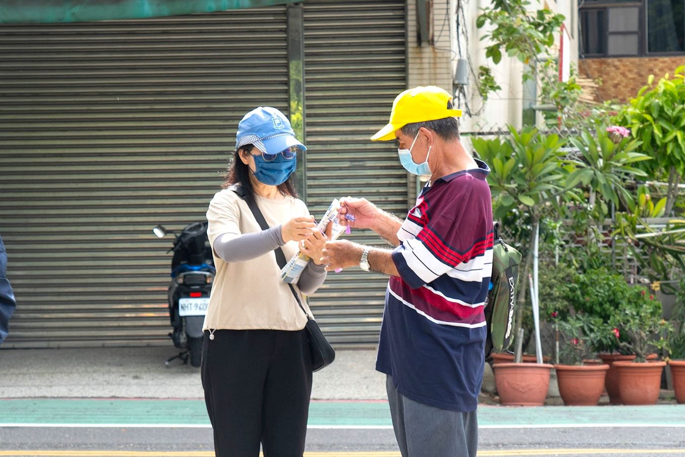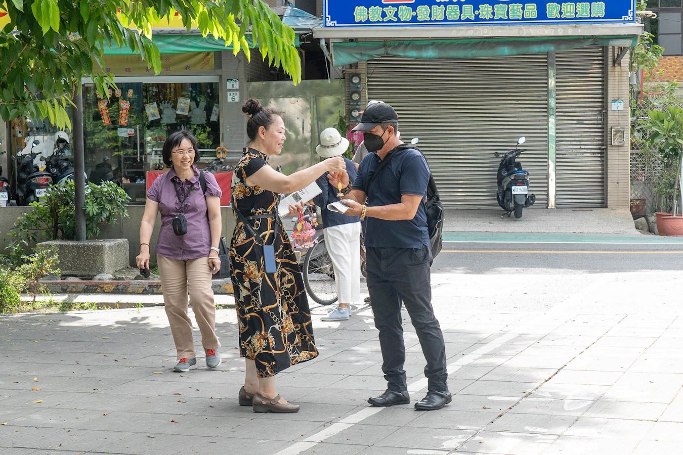 图17:林先生与妻子接了学员传递的真相传单,开心表示支持法轮功。