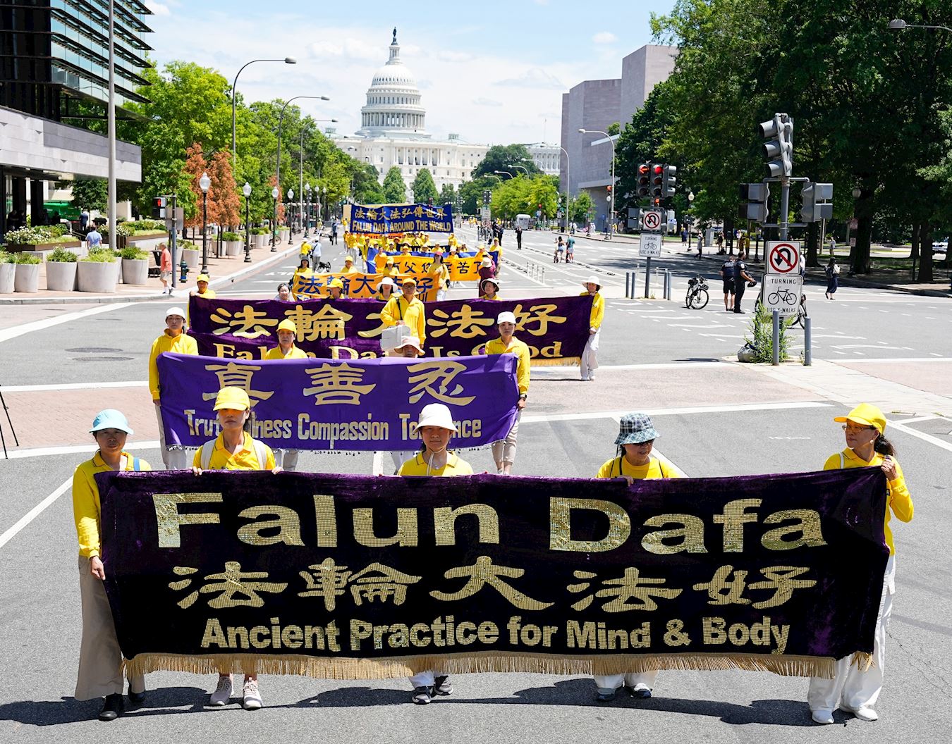 '图1~16:二零二四年七月十一日,来自美国东部的部份法轮功学员在华盛顿特区举行大游行。'