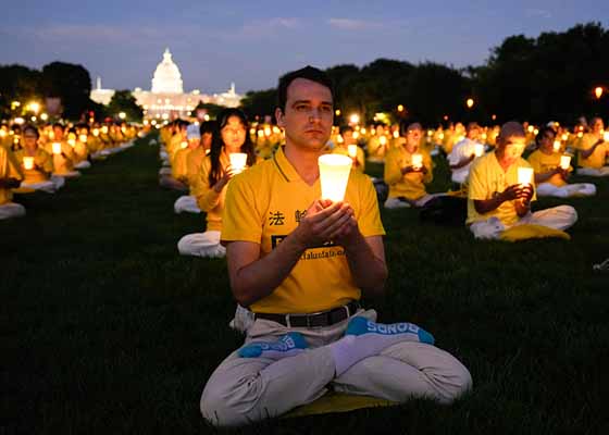 七月十一日晚,美国东部的部分法轮功学员在美国国家广场点燃蜡烛,悼念二十五年来,为坚守信仰而被中共迫害致死的法轮功学员,场面感人。