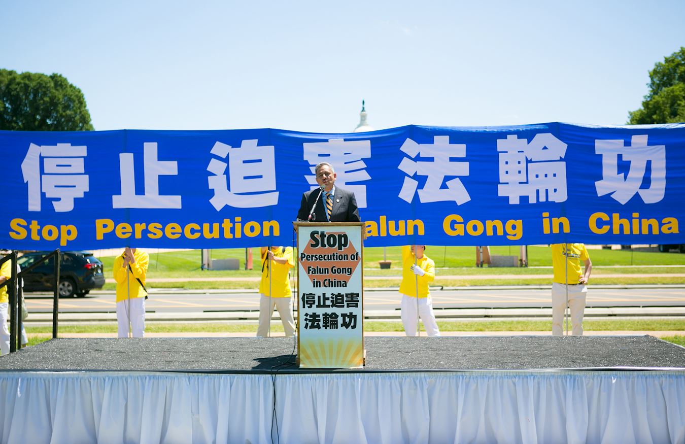 “今天,我们在此明确宣布,美国两党与法轮功团体站在一起,捍卫自由,捍卫宗教自由,并且反对中共对宗教自由的直接侵犯。”