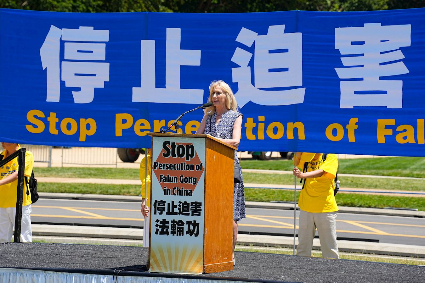 基督教自由国际总裁温迪·赖特(Wendy Wright)说,今天能和你们在一起是我的荣幸。你们是我们许多人的榜样,我们反对中国发生的暴行。我们与你们站在一起,反对中共肆无忌惮地虐待法轮功、基督徒、维吾尔族和其它群体的暴行。