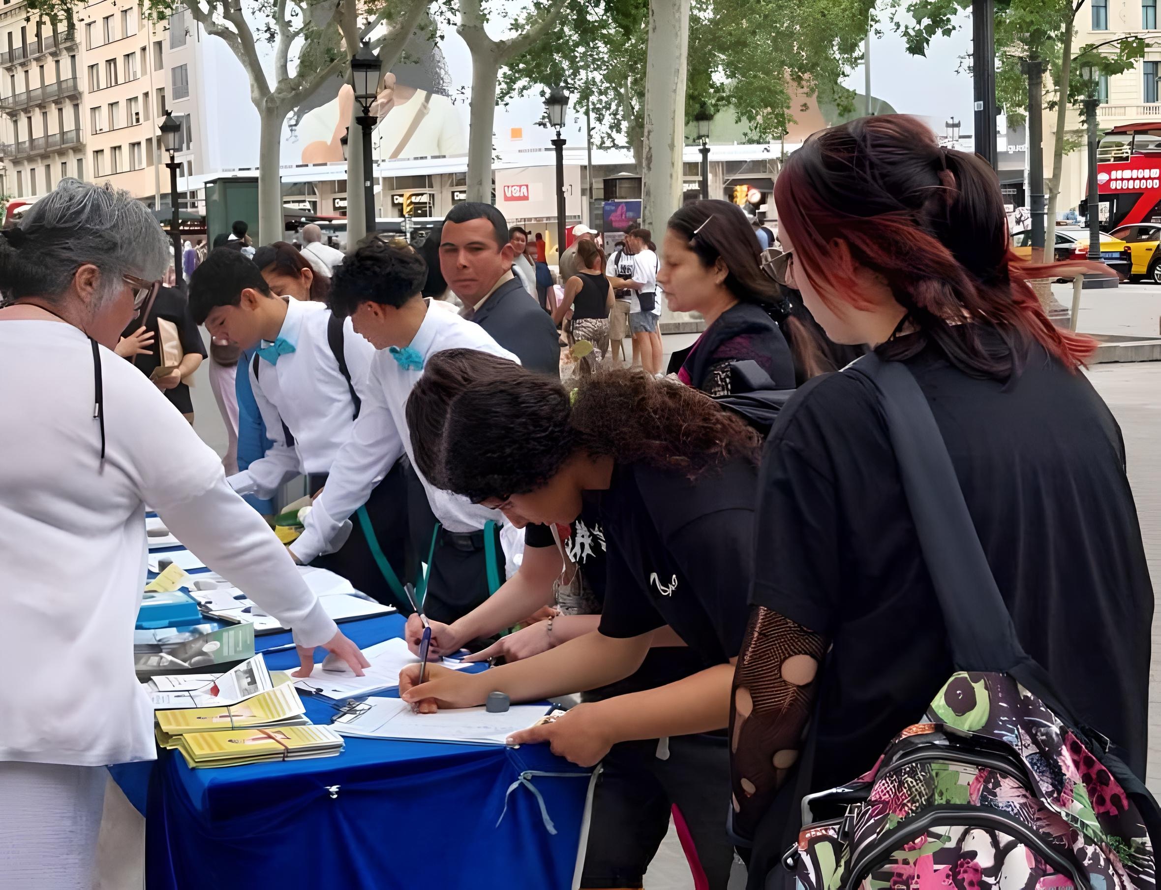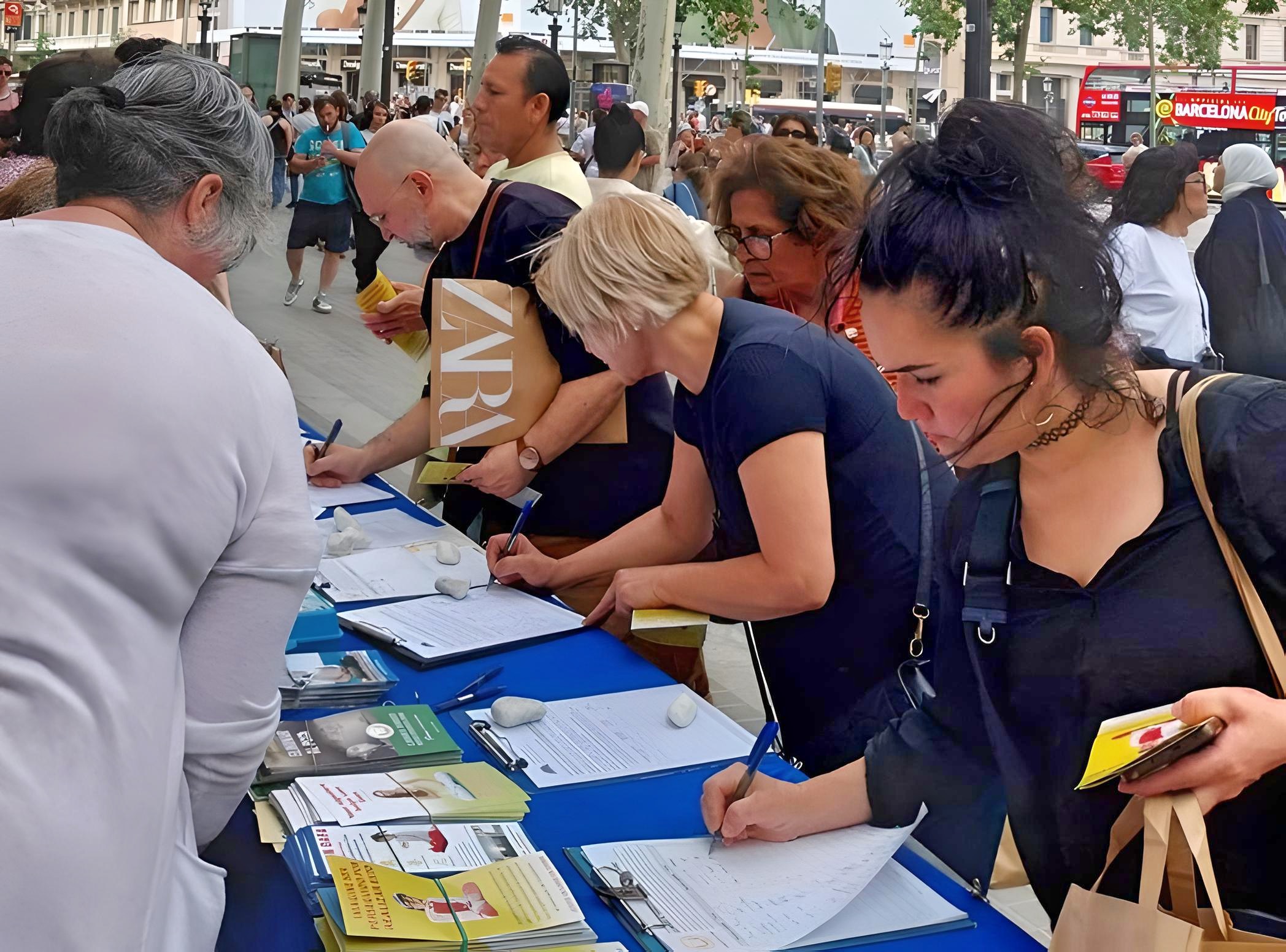 【明慧网二零二四年七月十三日】二零二四年七月六日,法轮功学员在巴塞罗那市中心的加泰罗尼亚广场举办反迫害征签活动。当了解法轮功真相后,各国游客以及当地居民纷纷前来签名声援。