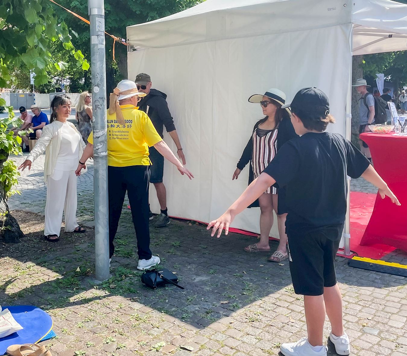 一对大陆来欧洲旅游的退休夫妇,看到法轮功学员在演示功法,揭露中共活摘器官的罪行时,表示非常钦佩法轮功!他们连连称赞法轮功学员做得好、很勇敢。老先生说:“其实这些事(法轮功真相)我们都知道,只是在国内敢怒不敢言。这次出来看到原来国外这么多人都在炼法轮功、而且有这么多外国人喜爱中国的传统文化,特别的开心。你们(法轮功)做得非常好。”临走时,夫妇俩还叮嘱学员要多多保重!