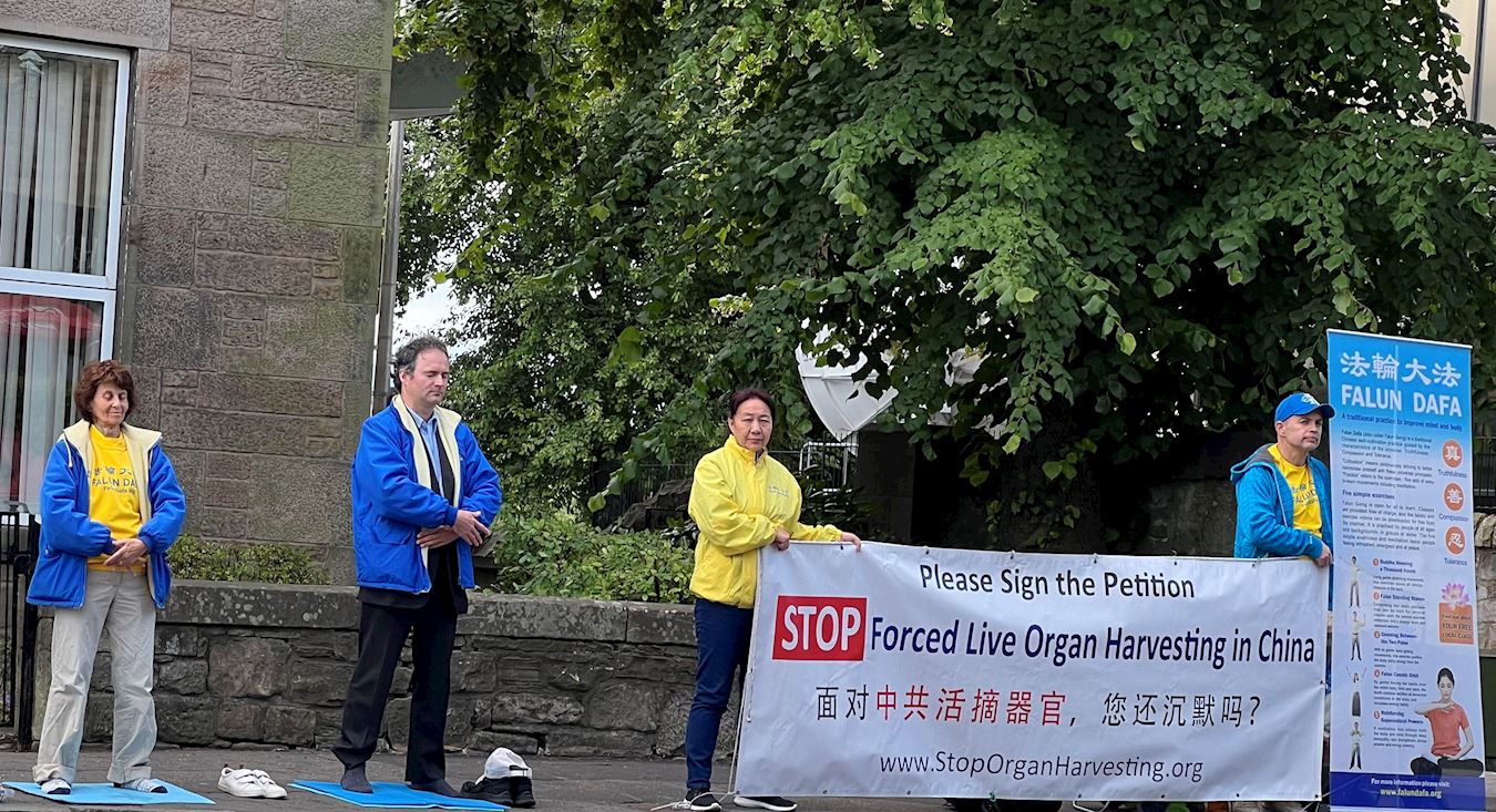 【明慧网二零二四年七月二十日】二零二四年七月十二日,苏格兰部分法轮功学员在爱丁堡中领馆前和平抗议,谴责中共对法轮功学员长达二十五年的迫害,呼吁人们共同制止中共活摘法轮功学员器官。活动得到苏格兰警察和民众的支持。活动前,苏格兰政要和议员发来信函表达了对法轮功学员反迫害的支持。