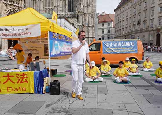 月十三日,奥地利部份法轮功学员在维也纳圣史蒂芬广场举行集会。他们在信息点上向市民演示功法,并举办了图片展。