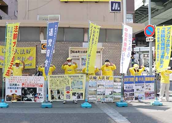 七月十九日和二十日,部分来自日本东京、大阪、名古屋、福冈、札幌的法轮功学员分别到各地所在地的大使馆和中领馆前,举行反迫害集会。