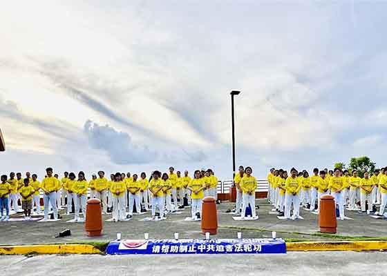 七月二十日傍晚,来自台湾、日本及关岛法轮功学员在风景秀丽的关岛阿鲁班海滩公园举行“七‧二零”反迫害二十五周年活动。