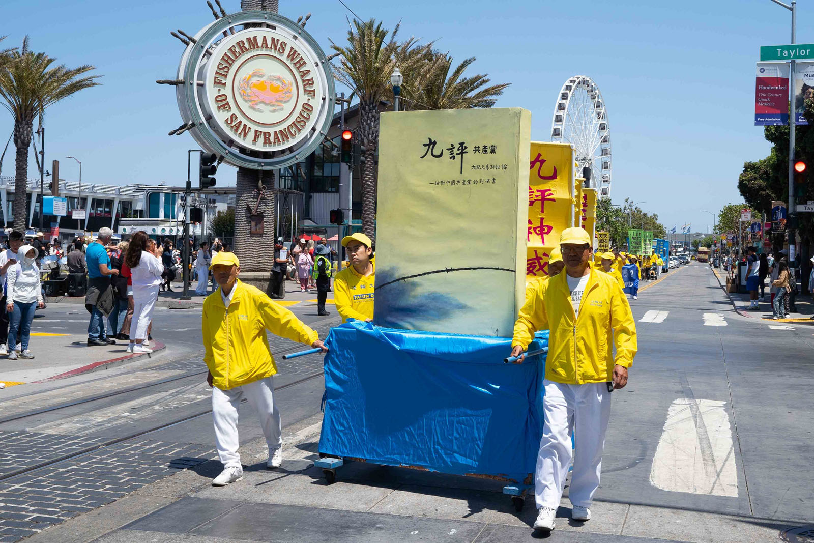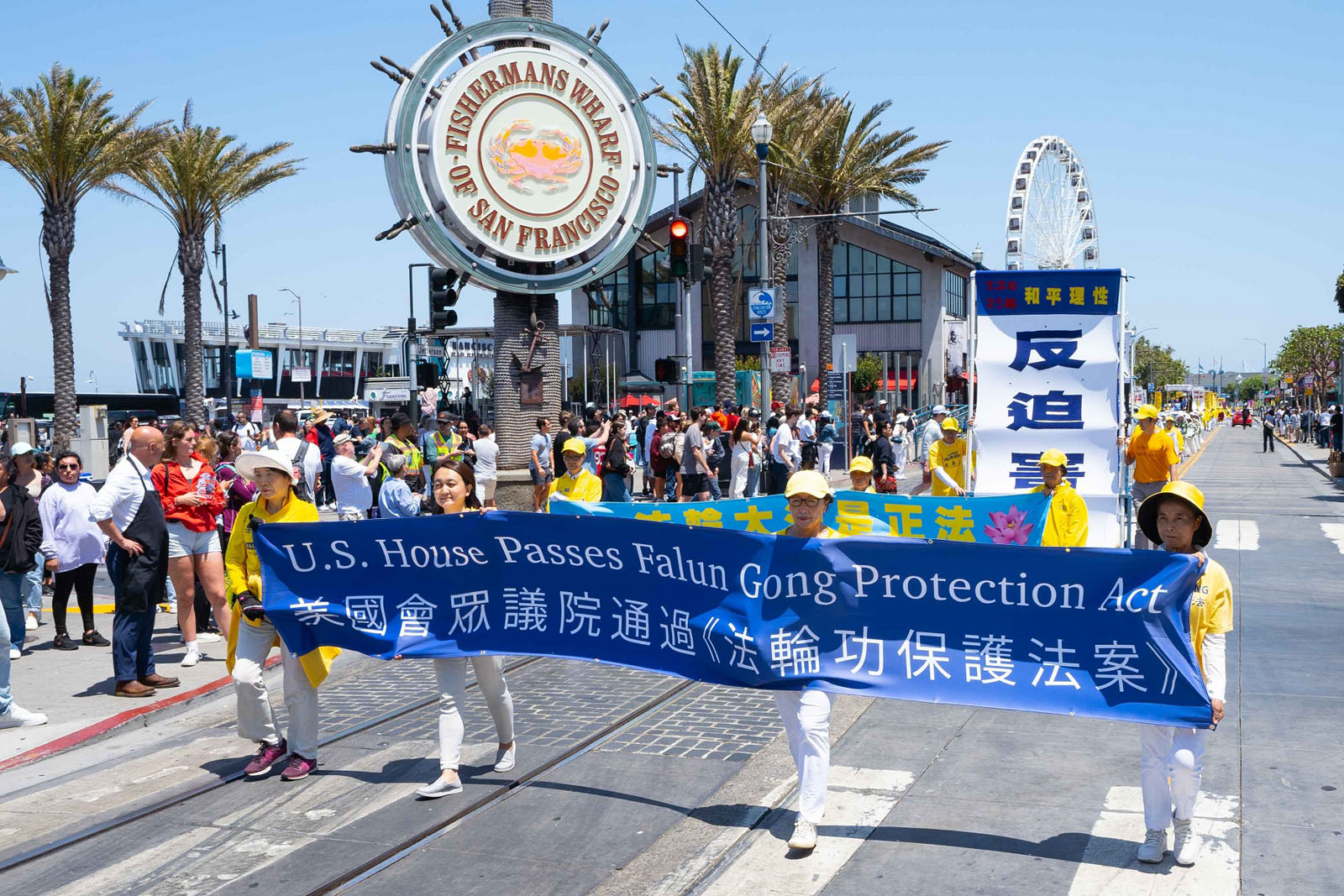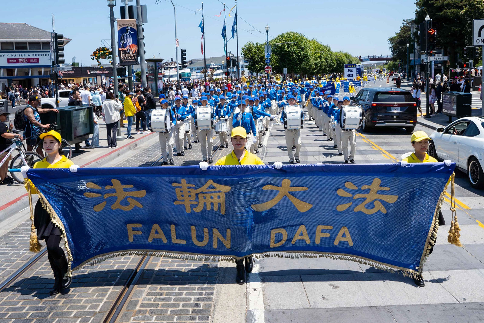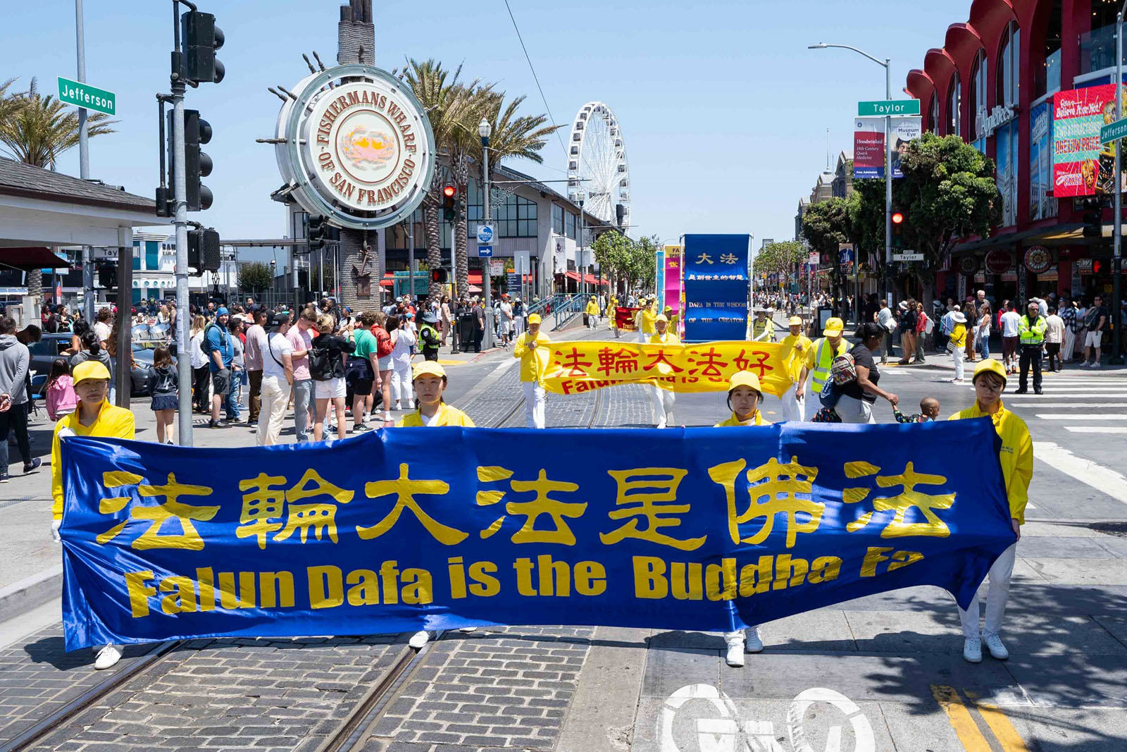 当天上午十一点,法轮功学员和各界人士在渡轮大厦前广场举行集会,谴责中共对法轮功的迫害。之后,法轮功学员举行游行,从渡轮大厦出发,沿着海滨大道(the Embarcadero)、经过旅游景点渔人码头,到达位于杰弗逊街(Jefferson Street)的海事花园(Maritime Garden)。