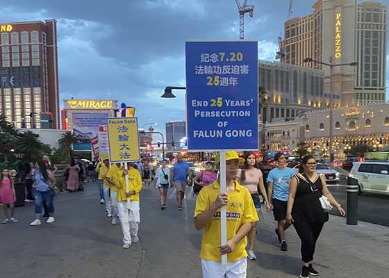 美国拉斯维加斯法轮功学员7月13日举办系列活动,呼吁制止中共对法轮功学员长达25年的残酷迫害,悼念被中共迫害致死的法轮功学员。