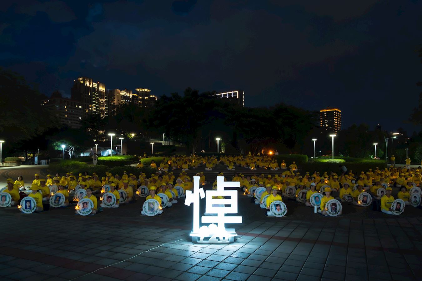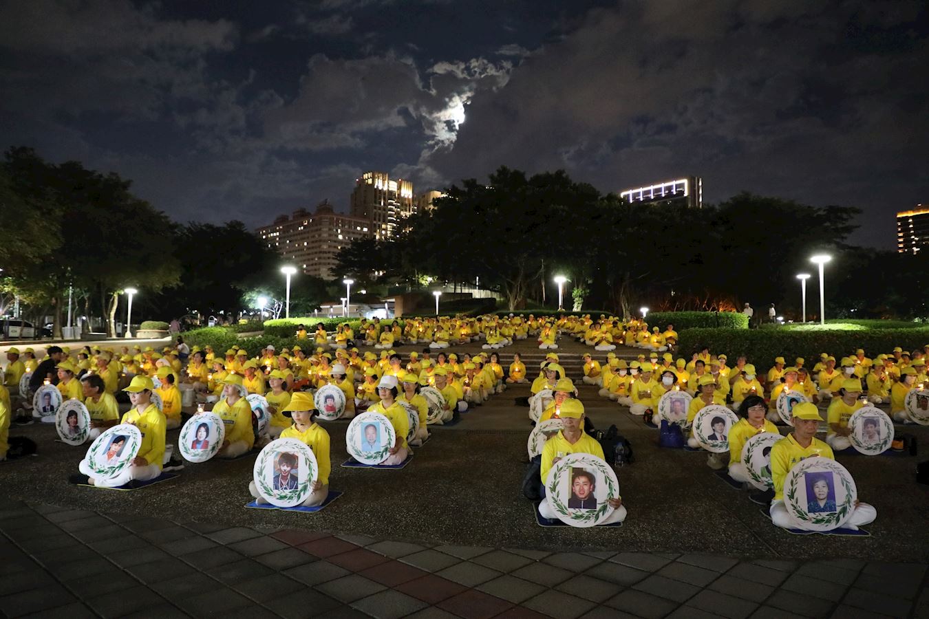 来自台中、彰化、南投的学员,向人们展示五套功法,以烛光、音乐、影片,悼念被迫害致死的法轮功学员。集会现场位于车流量很大的向上路二段,及惠文路交叉口,学员在街道旁拉出“法轮大法好”、“真善忍好”、“停止迫害法轮功”等横幅,吸引行人的目光。