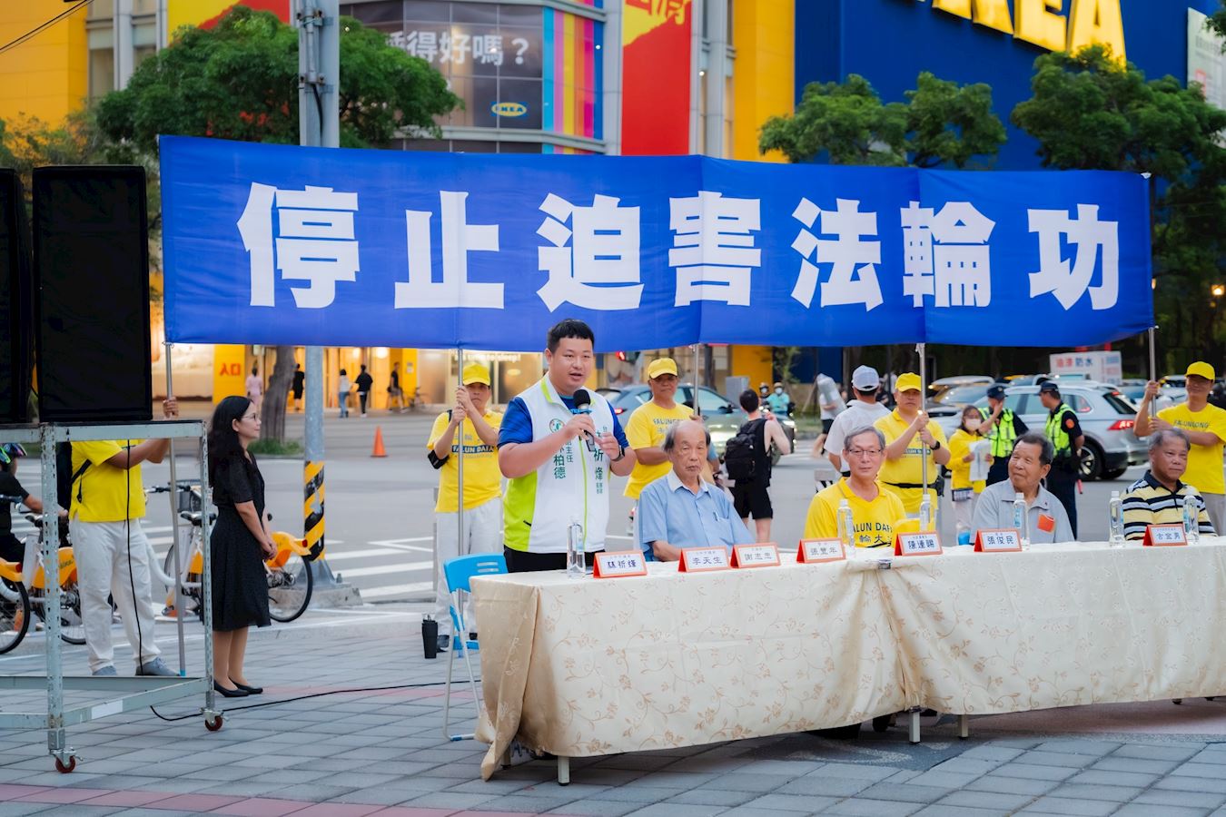 图12:台中市议员谢志忠到集会现场声援法轮功。