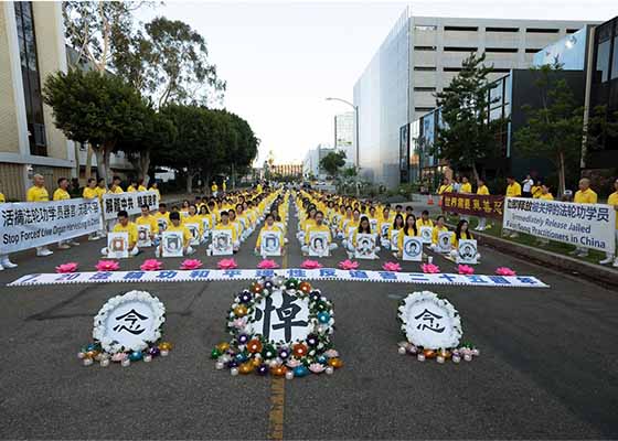 七月二十日,洛杉矶法轮功学员在中领馆前举办烛光夜悼集会,悼念被迫害致死的法轮功学员,并呼吁世人一起制止中共的迫害。