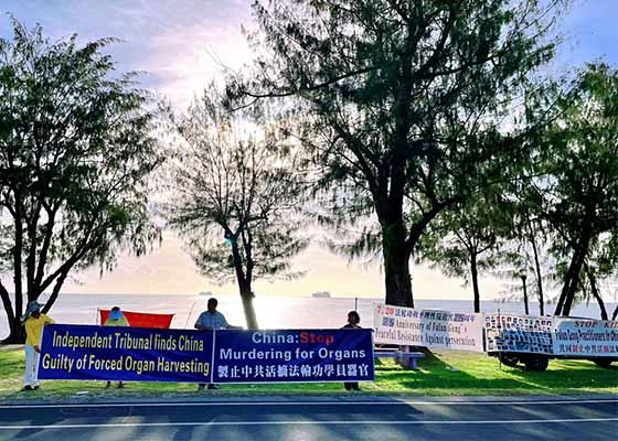 7月18日和19日塞班岛部分法轮功学员来到塔克海滩举行活动,传播法轮大法的美好及揭露中共长期对信仰真善忍的法轮功学员的残酷迫害。
