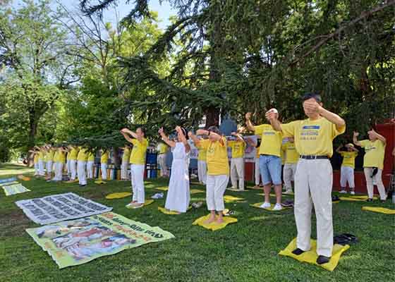 西班牙法轮功学员中使馆前集会吁制止迫害
