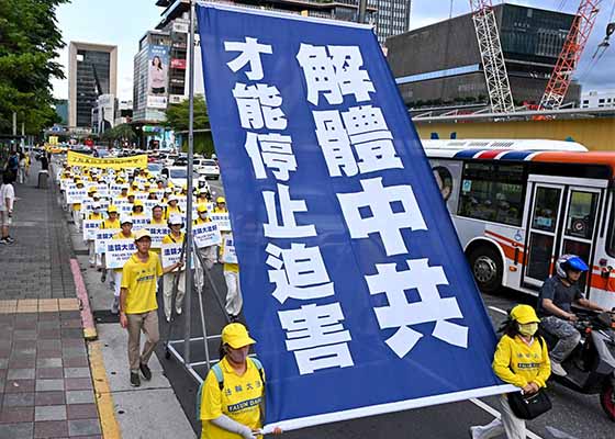 七月二十日,台湾台北与桃园、新竹、苗栗部份法轮功学员,参加“法轮功反迫害二十五周年—解体中共才能停止迫害”大游行。