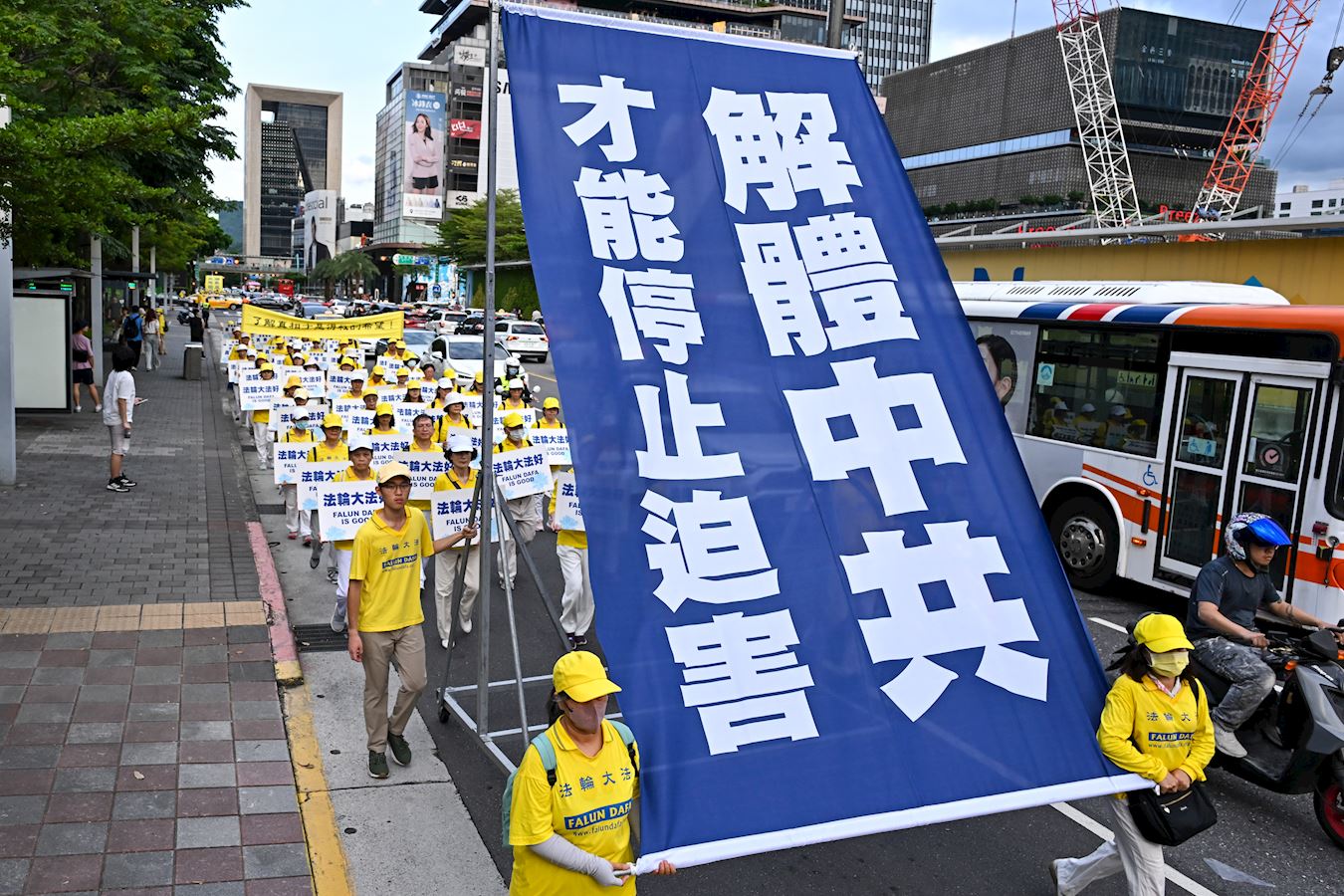 【明慧网二零二四年七月二十三日】(明慧记者李佳、黄宇生台北采访报道)二零二四年七月二十日周六下午四时,台湾台北与桃园、新竹、苗栗部份法轮功学员,参加“法轮功反迫害二十五周年—解体中共才能停止迫害”大游行。许多市民及游客停下脚步,观看游行,并表达对法轮功的支持。