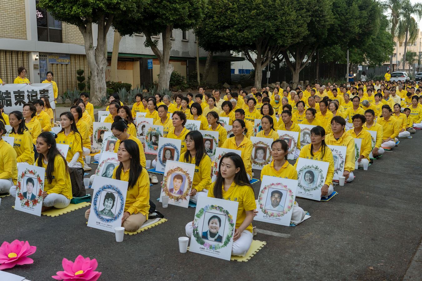 图1~5:二零二四年七月二十日,洛杉矶法轮功学员在中领馆前举办烛光夜悼集会,悼念被迫害致死的法轮功学员,并呼吁世人一起制止中共的迫害。