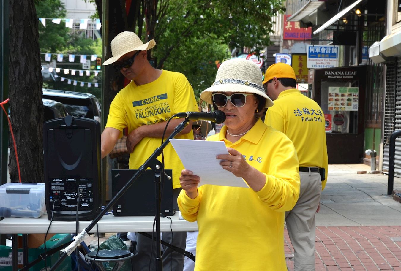 '图12:来自弗吉尼亚州的金融业人士辛西娅·奥罗克(Cynthia Orrock)(左一)表示,需要继续推动国会的《法轮功保护法案》。'