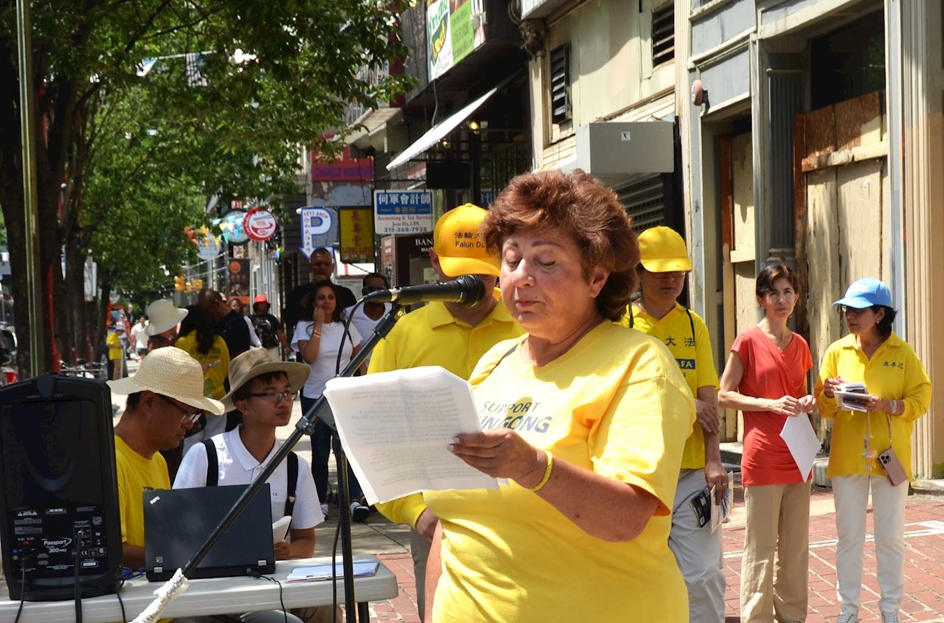 集会组织者卢坎斯基(Alex Luchansky)表示,“我们在这里集会是为了纪念二十五年来被迫害的法轮功受害者,这场迫害是由中共发起的……有超过一亿人因为信仰真、善、忍而遭受迫害。”