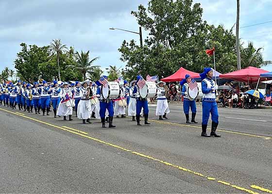 关岛解放80周年纪念日大游行于7月21日在关岛首都举行。由台湾及日本法轮功学员组成的天国乐团的作为本次游行的压轴演出。
