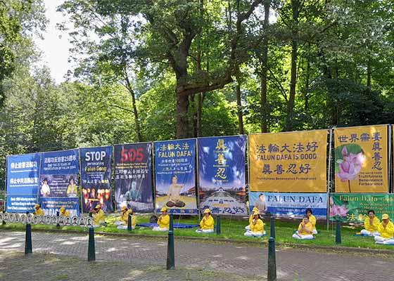 荷兰法轮功学员7月18日在海牙中使馆前举行反迫害集会,抗议中共长达25年的迫害,呼吁:“立即停止迫害法轮功!”
