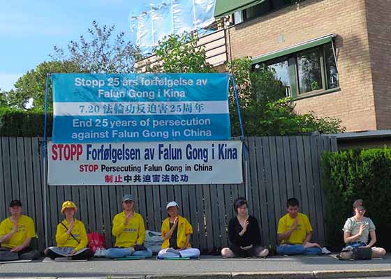 七月二十日,挪威法轮功学员在首都奥斯陆举办系列系列活动,展现法轮大法的美好和揭露中共长达二十五年的邪恶迫害,呼吁制止迫害。