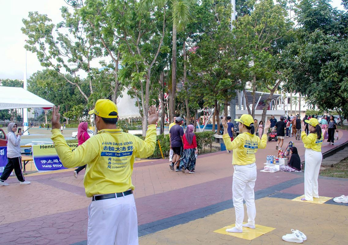 '图1~2:二零二四年七月二十日,印度尼西亚巴淡岛的法轮功学员集体炼功。'
