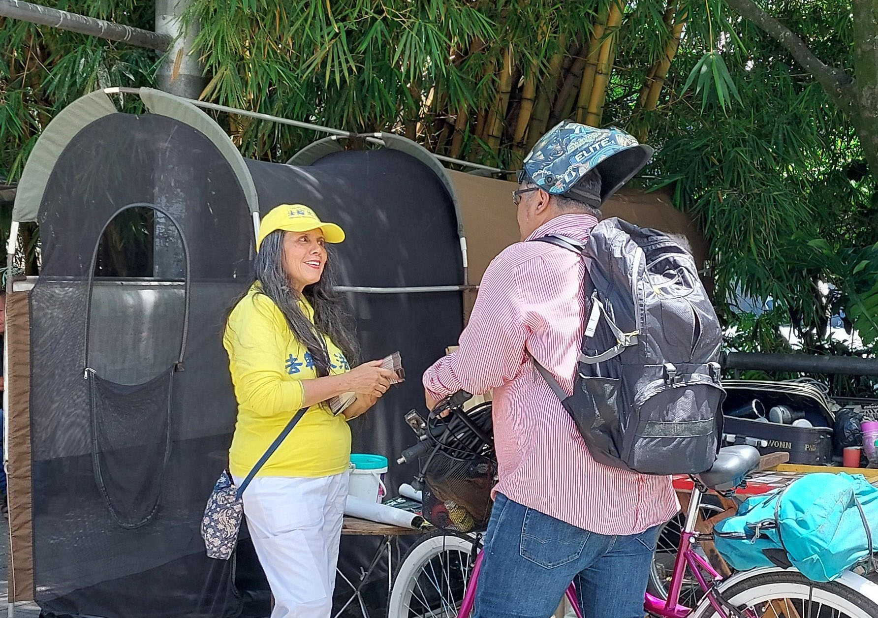 ![]() 图3~7:法轮功学员在与人们讲述法轮功真相,他们表示有兴趣更多地了解法轮功。 |