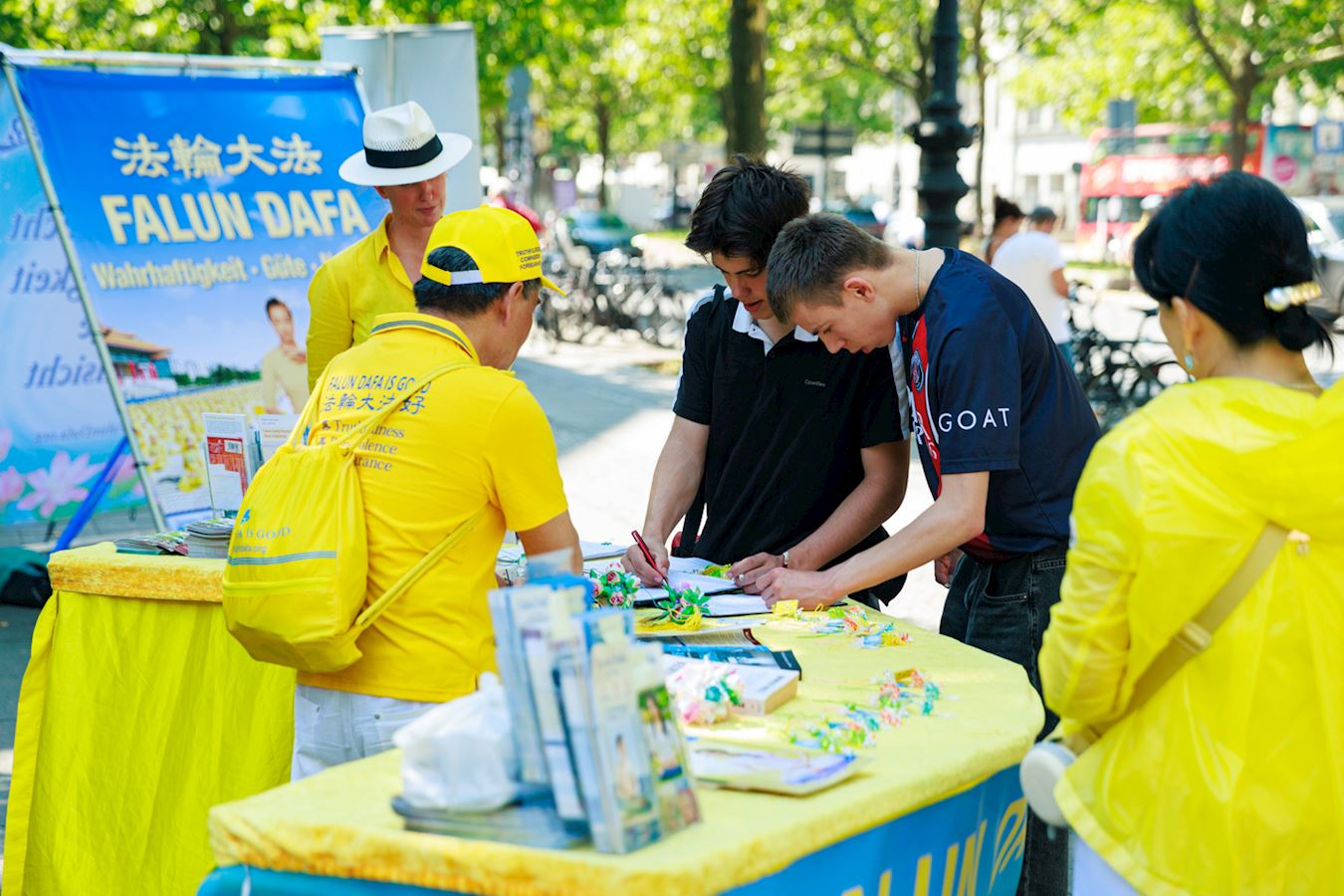 一些民众被法轮功学员炼功场景吸引;有些人当场学炼功法;还有些人想了解法轮功是什么,中共为什么要迫害法轮功。当他们了解真相之后,不少人纷纷签名声援法轮功反迫害。