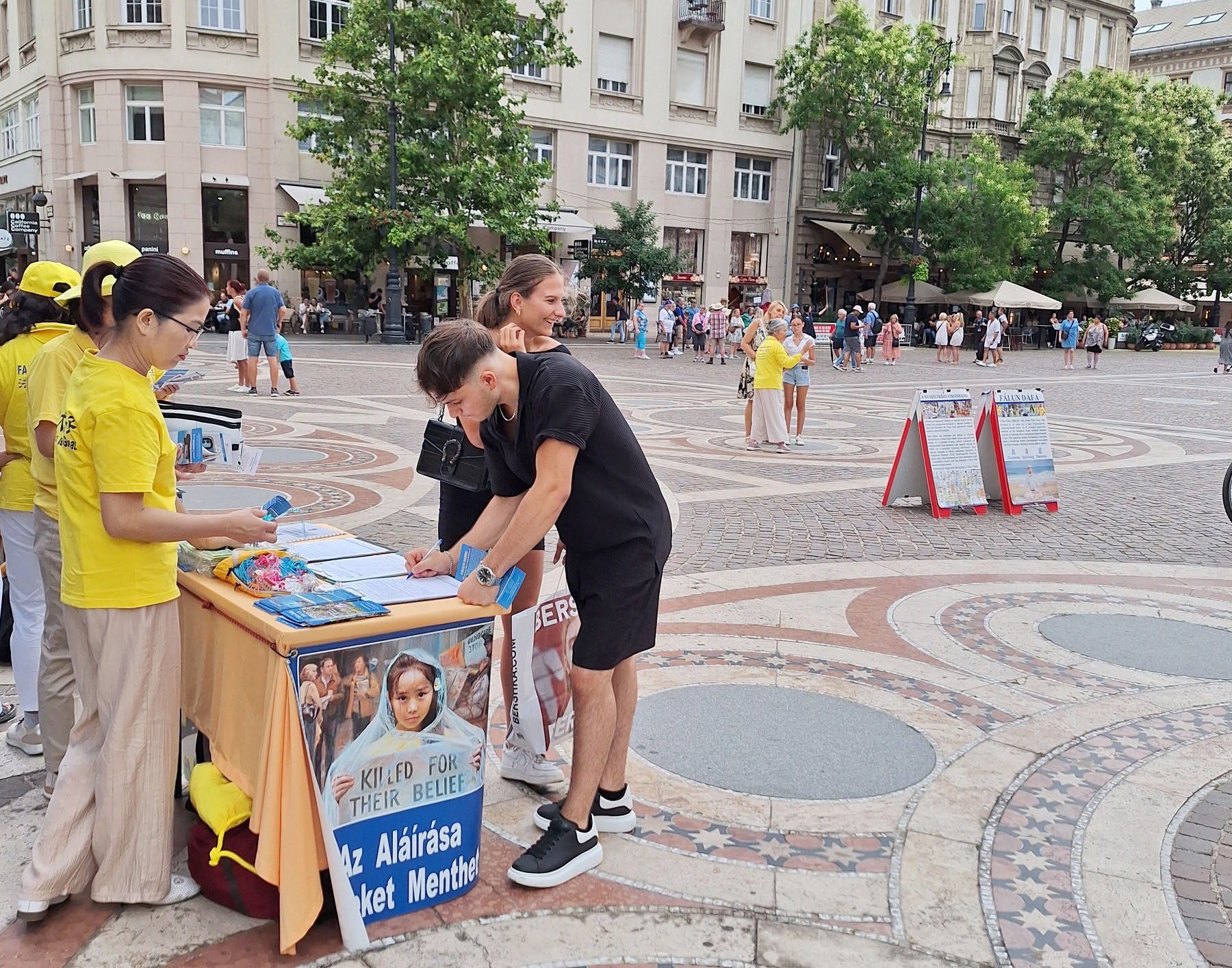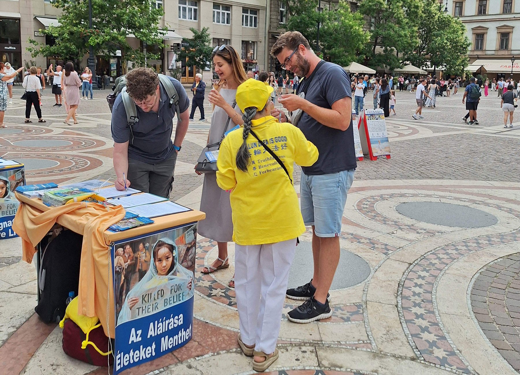 【明慧网二零二四年七月二十八日】二零二四年七月二十日,在法轮功和平反迫害二十五周年,匈牙利的部分法轮功学员聚集在布达佩斯举辧弘法,反迫害征签活动,向人们讲述中共在中国对法轮功长达二十五年的迫害。