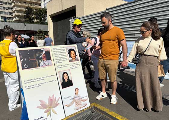 二零二四年七月二十日,巴西部分法轮功学员来到第一大城市圣保罗,在保利斯塔大道举行反迫害和讲真相活动。