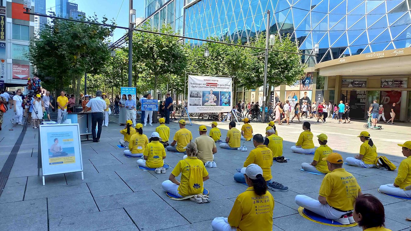 在二零二四年七月二十日,法兰克福附近和来自欧洲不同国家的法轮功学员在步行街上集会,揭露中共对法轮功长达二十五年的迫害。这场迫害给中国法轮功学员带来了无尽的苦难。从一九九九年起,世界各地的法轮功学员一直在以各种方式进行和平而坚决的抵抗。学员们的活动得到了越来越多的民众和政治家的认可和支持。