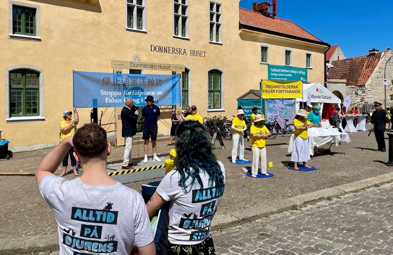 ![]() 图1~3:在维斯比中心广场,学员们举办反迫害讲真相活动,有法轮功法展示,和模拟中共活摘器官场景,得到了越来越多瑞典各界的关注和支持。 |