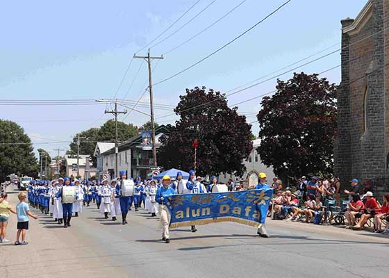 由来自加拿大多伦多、蒙特利尔和渥太华的法轮功学员组成的天国乐团,7月27日受邀参加了位于美国奥登斯伯格市的第63届国际航道节。