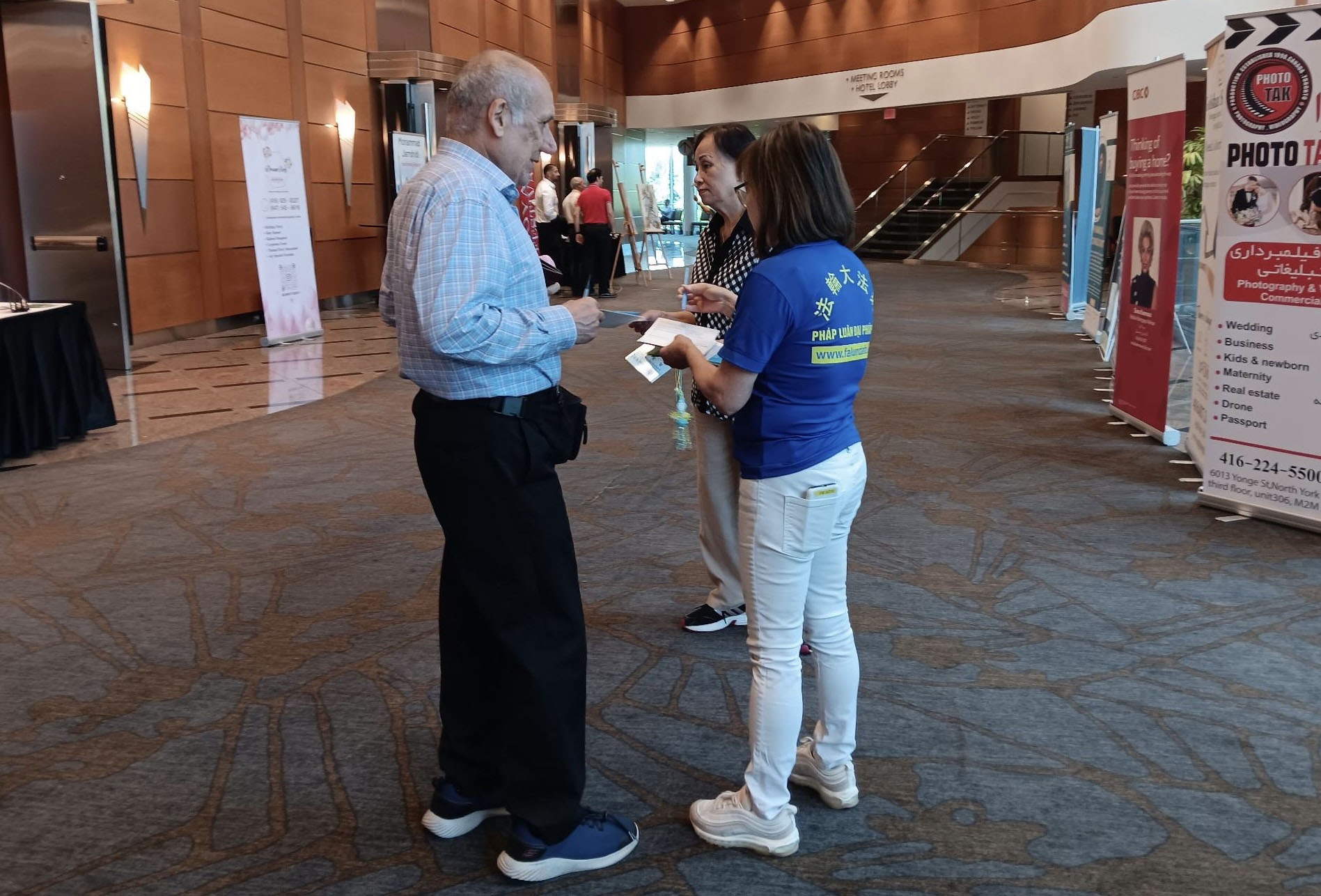 哈莱(Haleh)是旁边移民公司展位的一名工作人员,她对学员说:“我在很多年前的一个活动上曾经看到过法轮功的展位,那时是我的家人学,而我当时没有去了解。这次再看到,我要来了解并学炼。”