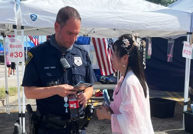 来自休斯顿和圣安东尼奥的法轮功学员设置了真相展位,他们展示舒缓优美的五套法轮功功法,向游客免费赠送书法作品,身着中国传统服饰的学员分发真相资料,讲述大法的美好。