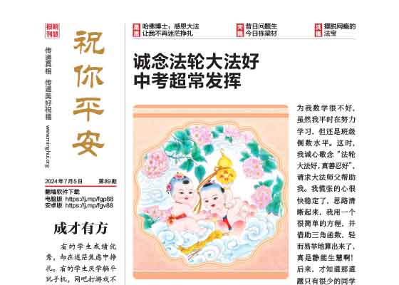 - 祝你平安(第八九期)- 诚念法轮大法好 中考超常发挥