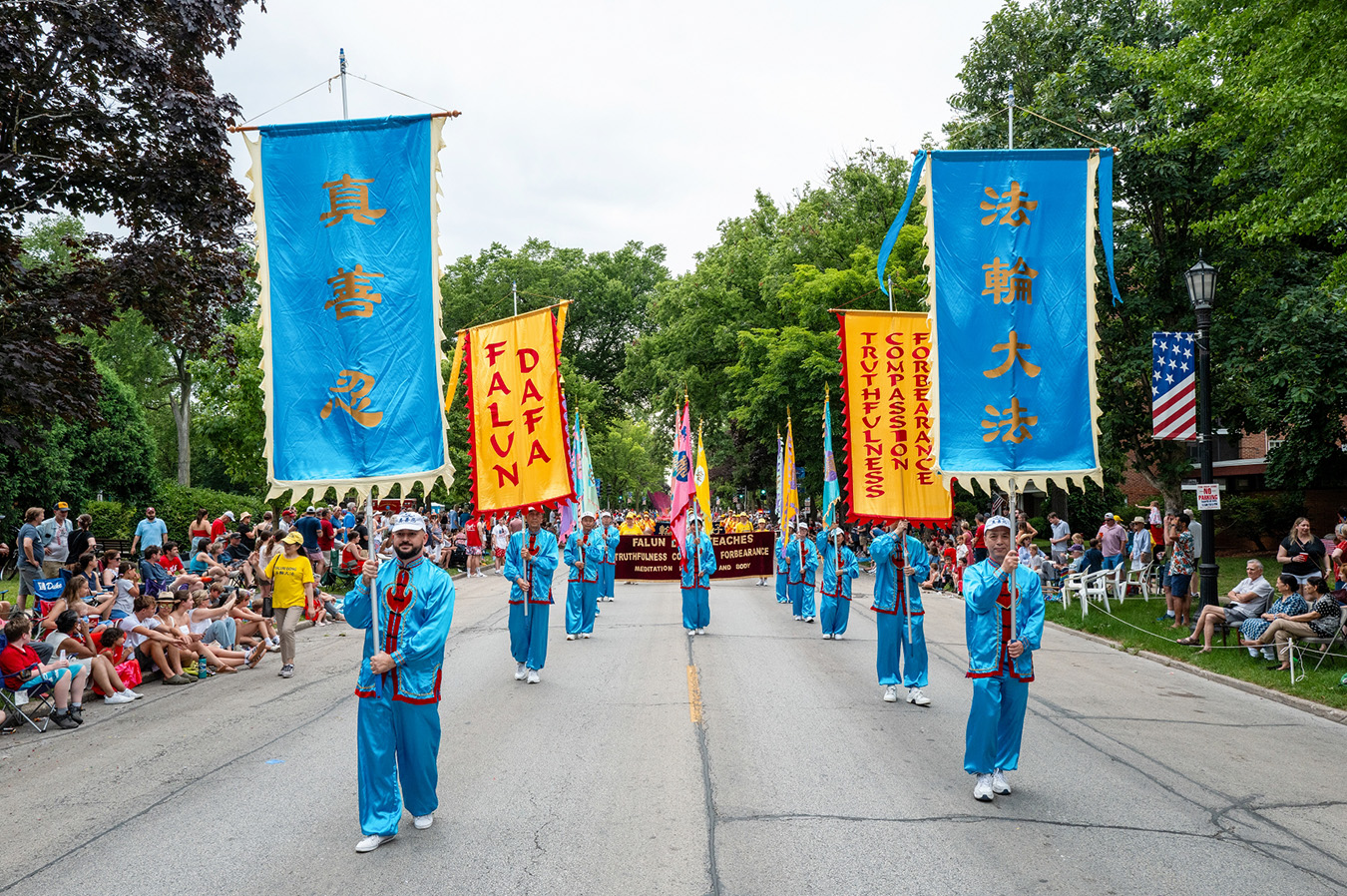 <英文版: https://en.minghui.org/html/articles/2024/7/7/218913.html>芝加哥埃文斯顿独立日游行 民众称赞法轮功